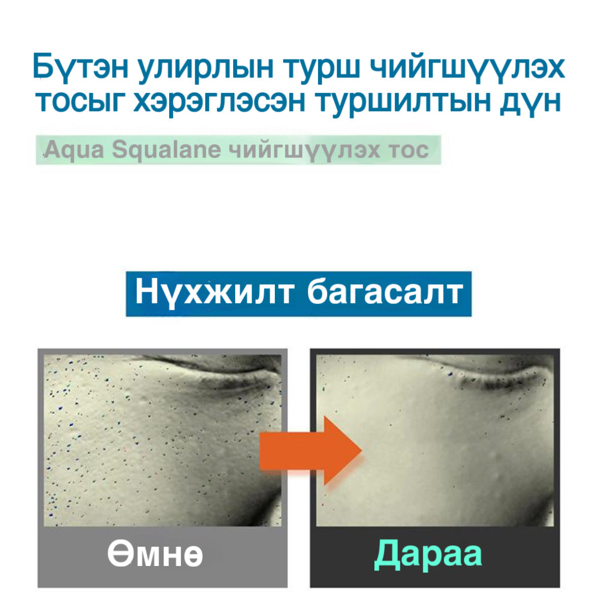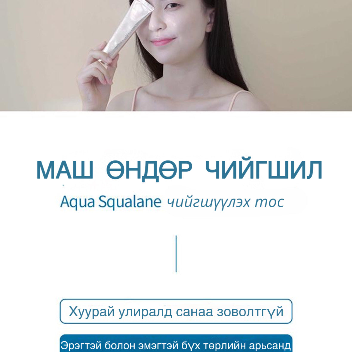 8 төрлийн гилуароны хүчил, 150'000ppm скуалан, пантенол агуулсан.